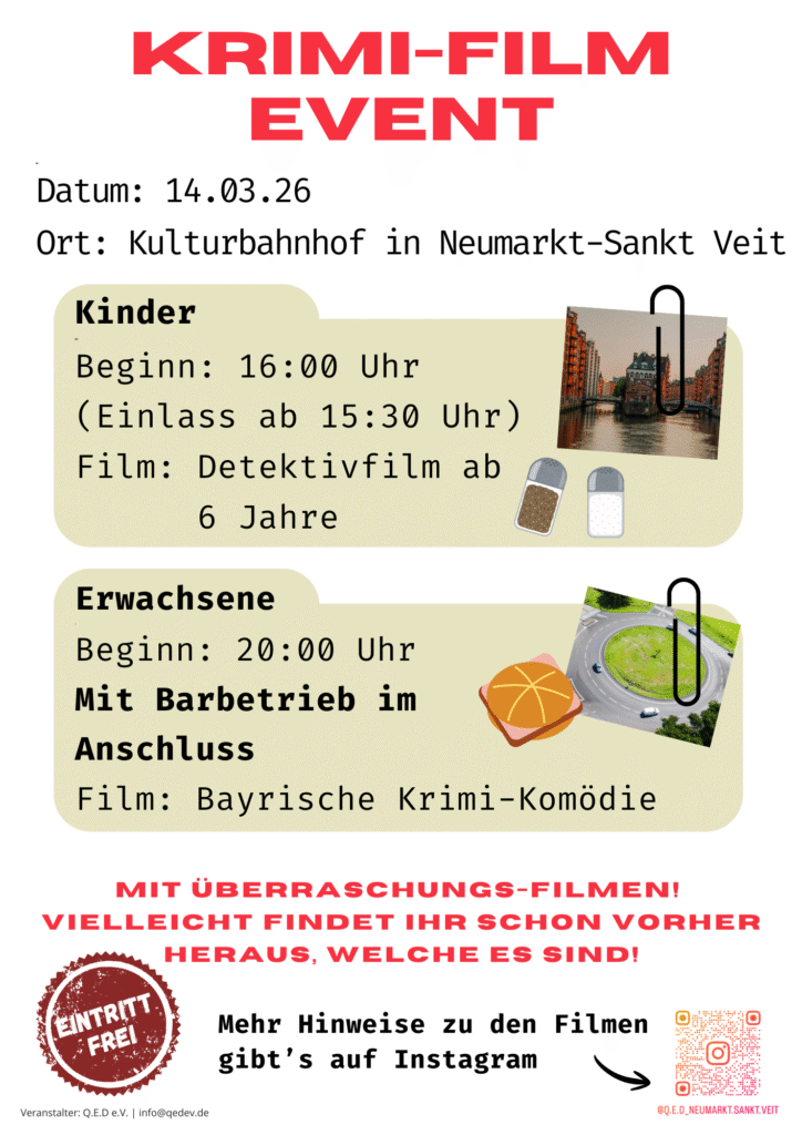 Noch mehr Hinweise: Auf unserem Instagram-Kanal @Q.E.D_NEUMARKT.SANKT.VEIT veröffentlichen wir regelmäßig neue Indizien.