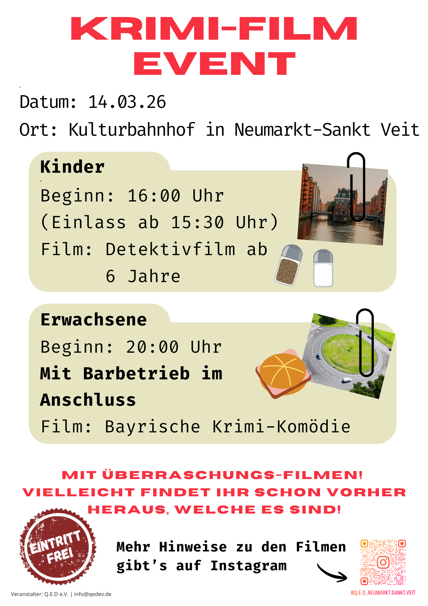 Noch mehr Hinweise: Auf unserem Instagram-Kanal @Q.E.D_NEUMARKT.SANKT.VEIT veröffentlichen wir regelmäßig neue Indizien.